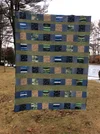 SAILING ON THE SEAS: 78" x 61" Double Sided Quilt with swirling motif. Designed for the lover of boats and water. Made with high quality cotton and jeans material and professionally quilted. $310.00